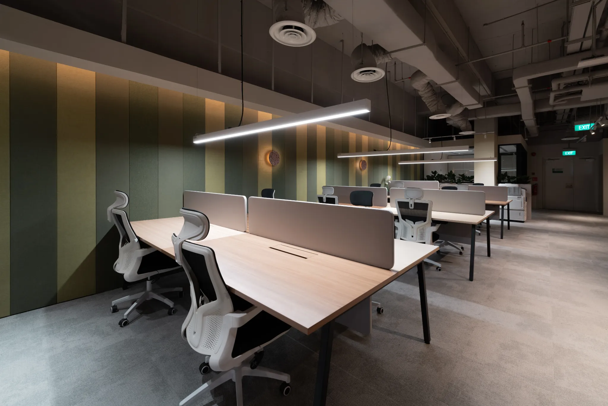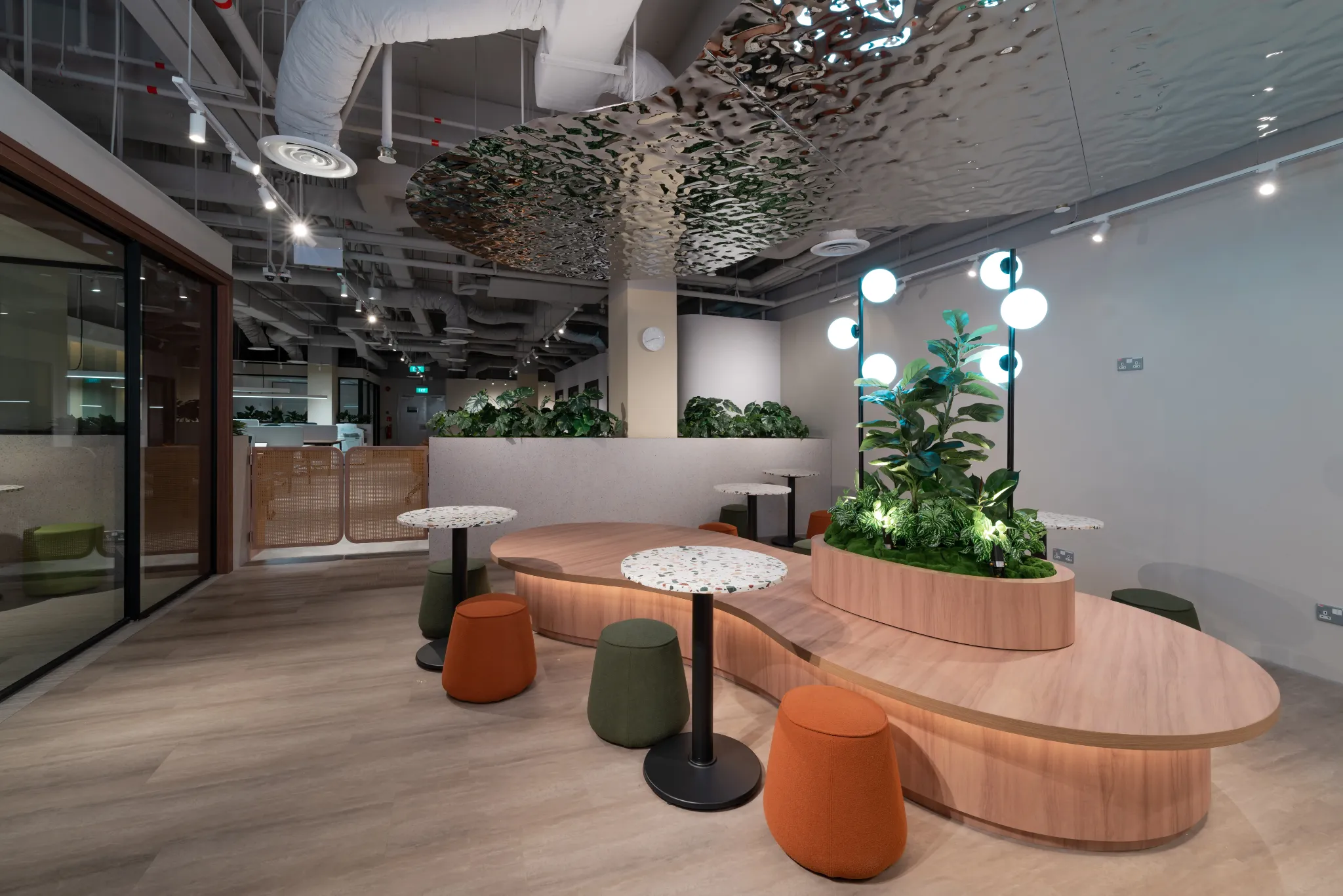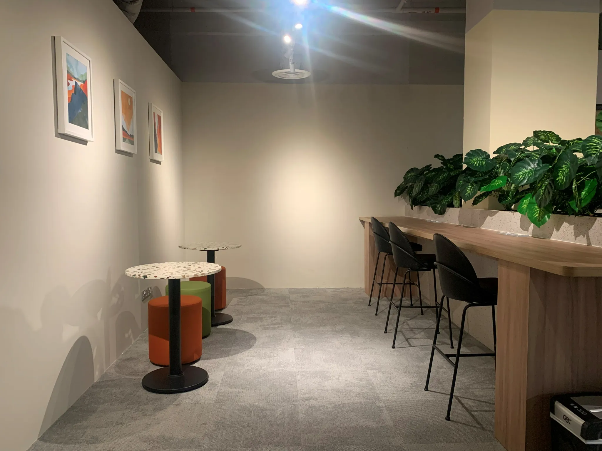 Hot Desking in the communal space area. Filled with amenities such as high-speed Wifi, printing services and free beverages.